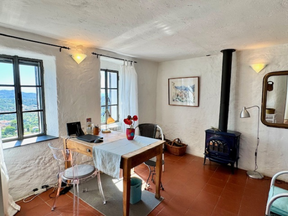 Heating: | wood-burning stoves on each floor, a fireplace, fitted electric radiators |