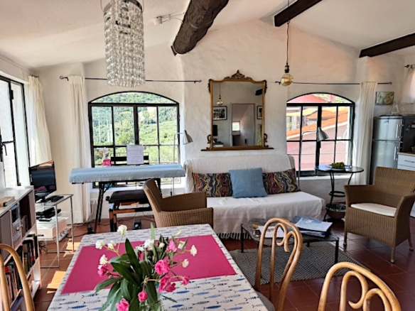Set in the picturesque countryside near Imperia, just 9 km from the beaches, this charmingly renovated house in the quaint village of Rimbaudi offers two apartments, ideal for a big family or guests. Built to withstand pirate attacks, the former Saracen tower combines historical details such as thick walls, niches, and slate staircases with modern living comforts. From the large roof terrace, you can enjoy breathtaking panoramic views of the sea and mountains. The lower flat has a small garden terrace. All the fittings and furniture are included in the price, so you can move in straight away. The offer also includes a plot of land with a private car park opposite.