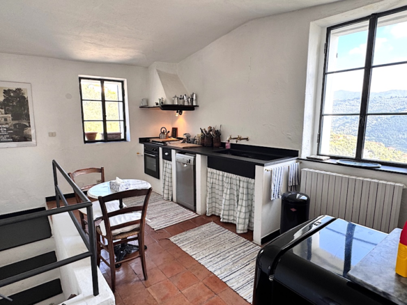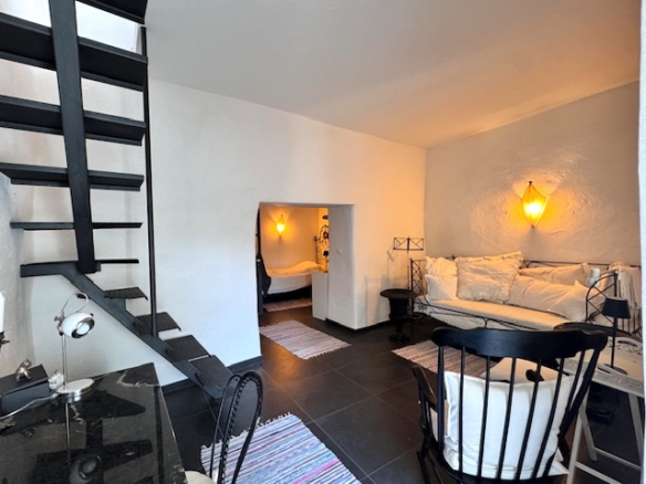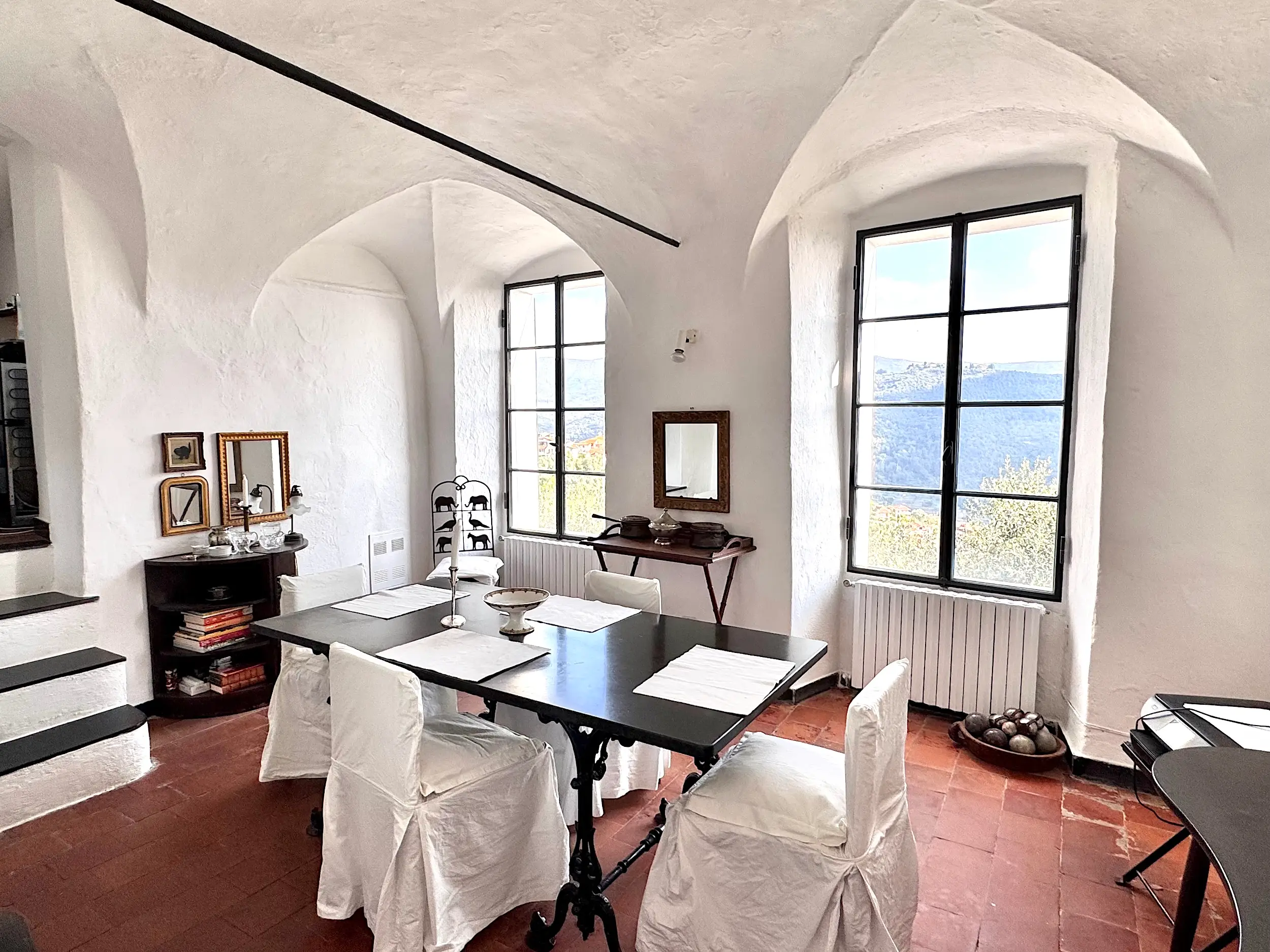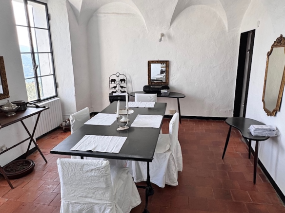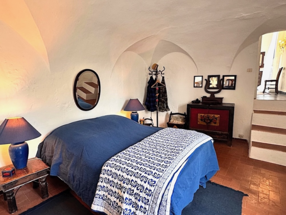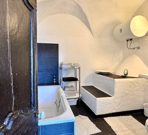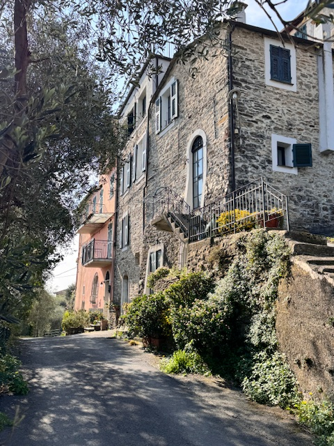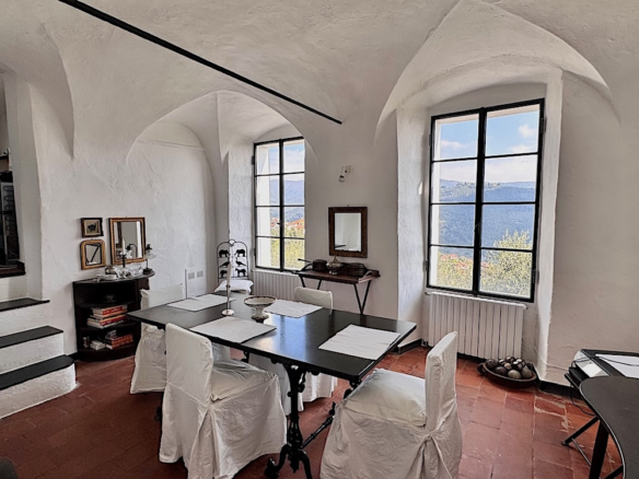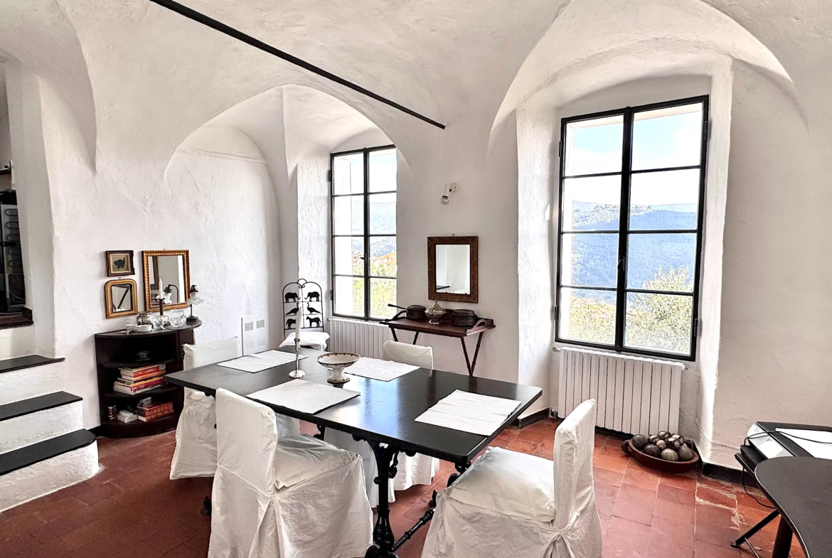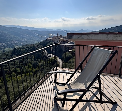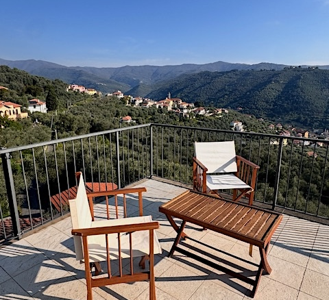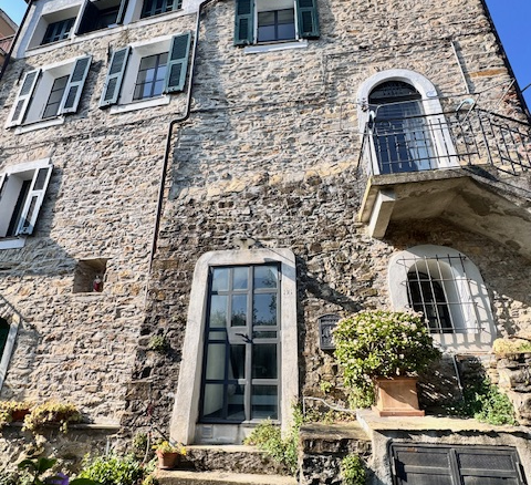 Questa casa a Costa Carnara, una frazione sopra Dolcedo, si trova ai margini del paese e gode quindi di una vista aperta sulla valle e, dalla soleggiata terrazza sul tetto, fino al mare. La spaziosa casa su quattro livelli presenta un carattere tipicamente ligure con volte, pietra ardesia e porte antiche. Le ampie finestre le conferiscono un carattere accogliente.