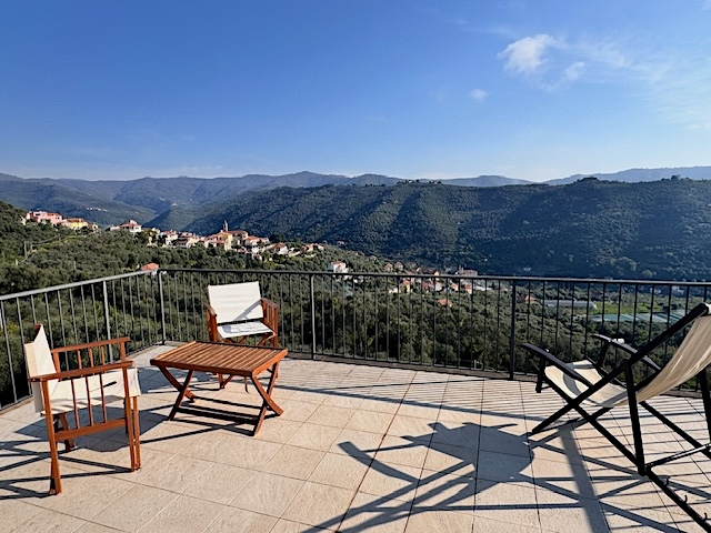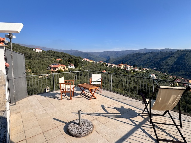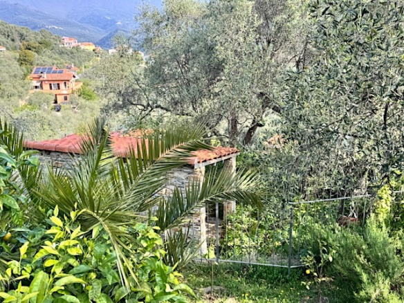 La terrazza sul tetto, di circa 25 m², offre una vista panoramica su tutta la Val Prino, fino alle prime montagne e giù verso il mare. Inoltre, l’immobile comprende un piccolo terreno di circa 90 m², situato a circa 100 m dalla casa.