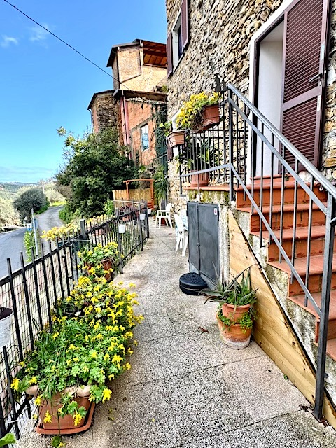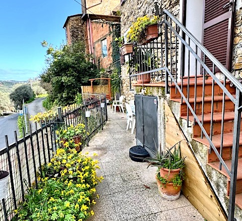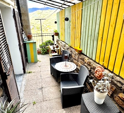 The flat is located slightly above the main road that leads from Dolcedo to the villages further back in the Valprino Valley. This has the advantage of public parking spaces and a bus stop right in front of the house. Dolcedo, the central village of the Valprino Valley with several restaurants, cafés, shops for daily needs, a nursery and a school, is only a few minutes away by car and about 15 minutes on foot. The beaches of Imperia are about 15 minutes away by car.