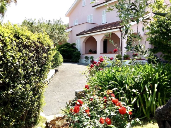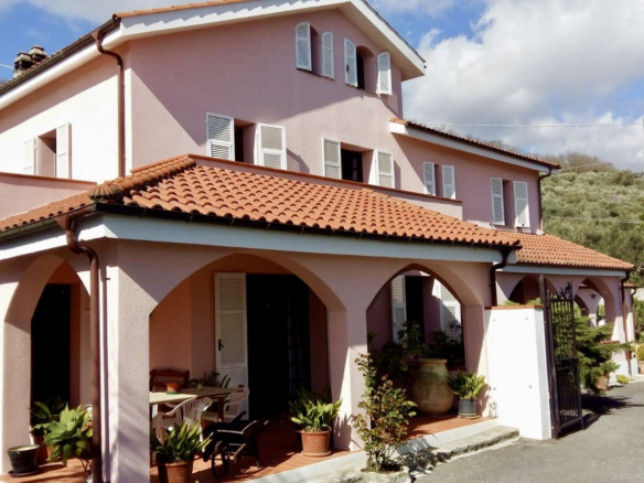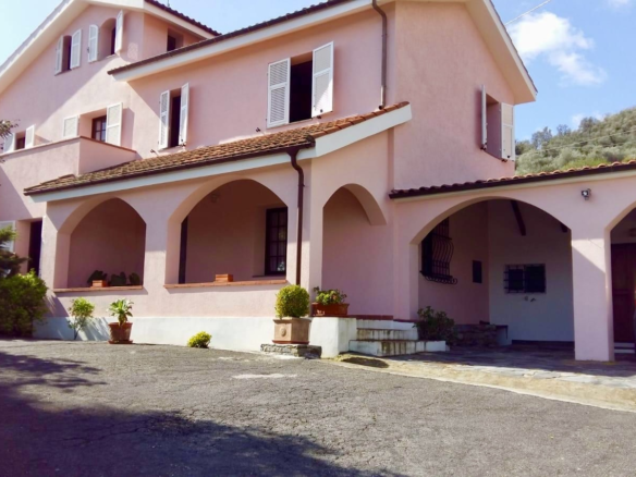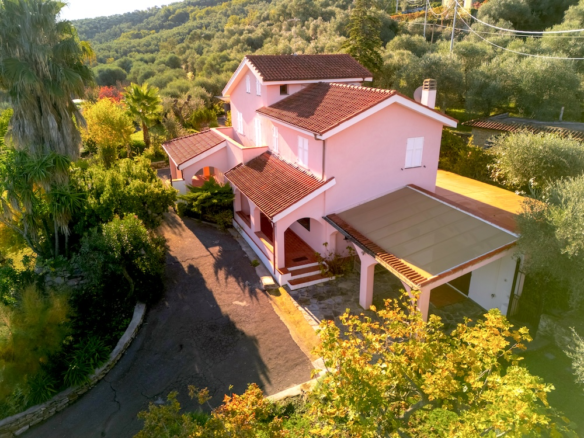 This detached villa persuades through its quiet and free-standing position just five minutes by foot from the nice and active village of Bellissimi. A marvellous garden surrounds the house from all sides. On one side you find an olive grove, from which you can produce your own olive oil, while the other side is characterized by mediterranean vegetation and palms. The villa has been family-owned for decades and offers plenty of space on three levels. To ensure a comfortable living experience all year round, the heating and possibly the electrical system would have to be modernized.