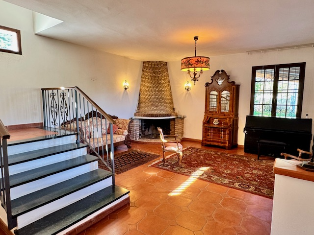 On the ground floor, the rooms merge into one another: from the entrance you enter the living room with an open fireplace, an adjacent studio as well as the dining room and further into the spacious kitchen. Both have French doors on the portico in front, so that you can eat comfortably inside or outside. On the 1st floor there is the main bedroom with a private bathroom and an adjacent balcony and another bedroom with a terrace. From both you have a great view of the garden, the entire Valprino Valley and Bellissimi. On this floor there is also a large bathroom as well as a third bedroom and another small room. In the 2nd floor attic there is another sleeping area with its own bathroom. On the ground floor you enter an approximately 100 square meter room that can be used as a cellar, technical room and possibly as a garage. On the west side of the house, next to a large sun terrace, there is an approx. 50 square meter Magazzino made of natural stone, which serves as a storage area.