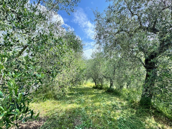 The entire property on several levels with its 4,000sqm is fenced and sunny. You can find about 80 olive trees that produce up to 100 liters of the best olive oil. In addition, there are about 20 fruit and citrus trees: cherries, pears, quinces, figs, lemons and oranges as well as kiwis and some vines. Around the house there is a driveway for parking, a terrace area and its own well.