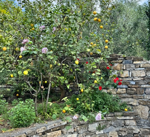 This cottage is the right place for garden lovers, as on the large plot you can find various types of citrus and fruit trees as well as flowering plants in all colors, next to olive trees and grapevines. The secluded location in the middle of the olive groves below Vasia guarantees a lot of privacy and an unobstructed view into the valley. You can access the house by foot via an old trail that starts in the village, otherwise by car it is about 1.5 km of unpaved road.