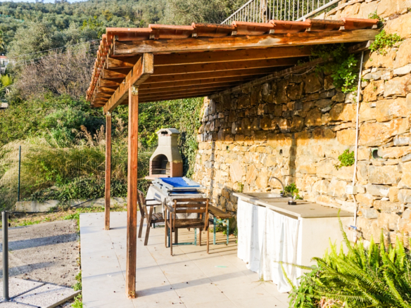 The property is located next to the small country road before entering Canneto, a sunny, idyllic hamlet of about 30 buildings. Molini di Prelà, the closest village, to which the hamlet belongs, about 2 km from the property, features various restaurants, a pharmacy, and a convenience store for your daily needs. It is only approx. 12 km to the sea and the beaches of Imperia, the town with the best climate in Italy – mild winters and temperate summers. The airports of Genoa and Nice are about 110 km away.