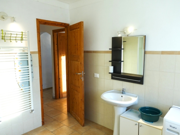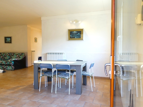 Surrounded by olive groves in the countryside, this three-storey apartment building is located on a south-west facing hillside close to the peaceful hamlet of Canneto, popular even in winter due to its sheltered location and warm climate. The ground floor flat for sale offers bright, spacious rooms and a large, sunny terrace with an outdoor kitchen. There is also a place for a round above-ground pool. Here you can enjoy marvelous, unobstructed panoramic views over the hills and valley to the full! A shared, rather steep driveway leads from the country road above through a gate down to the private parking area next to the flat entrance. On request you can acquire a cellar compartment of approx. 7 m².