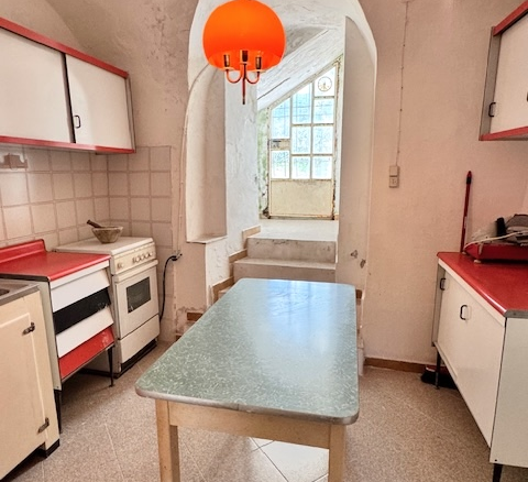Die im 1. Stock liegende Wohnung verfügt über ca. 140qm Nettofläche. Ein zentraler, grosser Eingangsräum führt in die jeweiligen Zimmer: Küche, zwei Bäder, drei Schlafzimmer, ein Studio sowie einen grossen Abstellraum. Da es zwei Eingänge gibt, könnte dieses Stockwerk in zwei Wohnungen aufgeteilt werden. Im Erdgeschoss liegt die Taverne mit ca. 90 qm Nettofläche, bestehend aus einem grossen Raum mit angrenzender Küche und einem weiteren Keller. Sie ist bereits zum grossen Teil Wohnfläche, für eine separate Wohnung müsste ein Bad eingebaut werden.