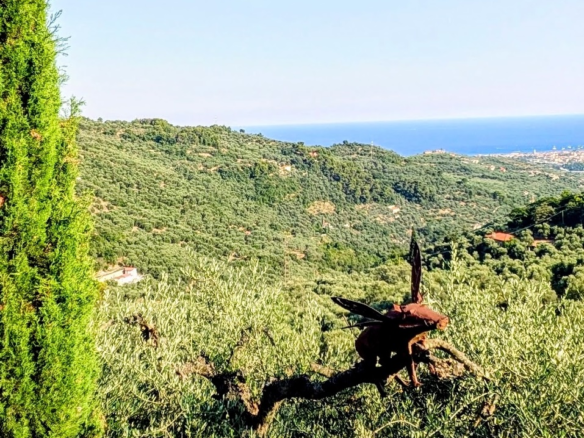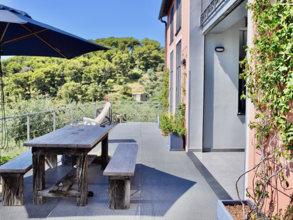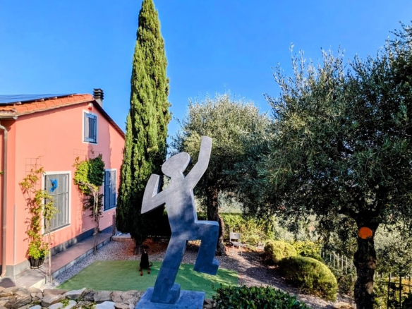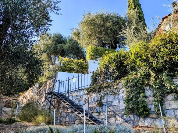 The property commands its position above the valley and sea, encircled by massive stone walls that provide a rare blend of seclusion and distinction. Situated on a paved private road winding through olive groves from Diano San Pietro, the villa offers seclusion yet easy access to :