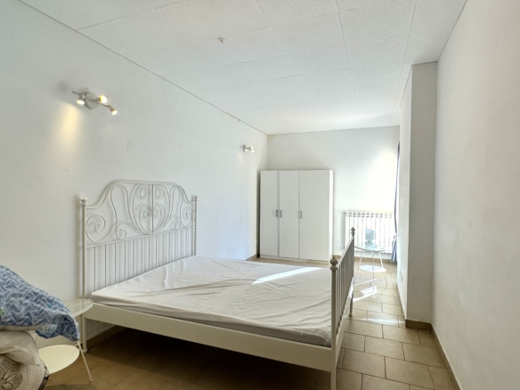 Dank der an den Hang angepassten Architektur hat die Wohnung einen ebenerdigen Eingang. Die Nettowohnfläche beträgt ca. 70 m². Man betritt die Wohnung über eine nach Süden ausgerichtete Terrasse, die direkt in das Wohnzimmer mit offener Küche führt. Es gibt ein modernes Badezimmer mit Dusche und zwei geräumige Schlafzimmer mit französischen Türen, die zum Außenbereich führen. Das Gebäude ist nur wenige Jahre alt, allerdings sind kleinere Wartungsarbeiten erforderlich. Möbel und ein kleiner Kellerraum von ca. 7 m² können auf Wunsch mit erworben werden.